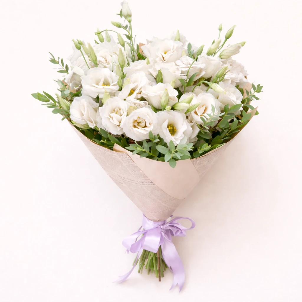 Эустома символизирует искренность, нежность и благодарность. Благодаря своему утончённому виду она часто используется в свадебных букетах и романтических композициях.